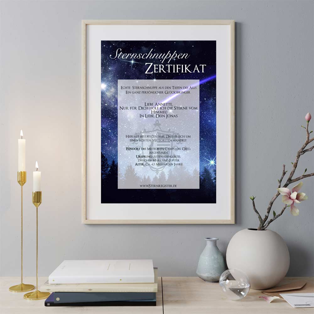 Verschenken Sie mit einer echten Sternschnuppe einen Glücksbringer aus den tiefen des Alls: