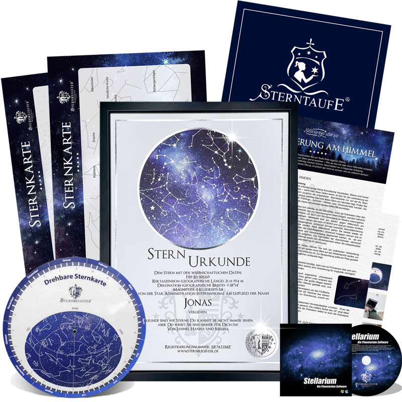 - Zwei Profi-Sternkarten zum leichten Auffinden Ihres Sterns